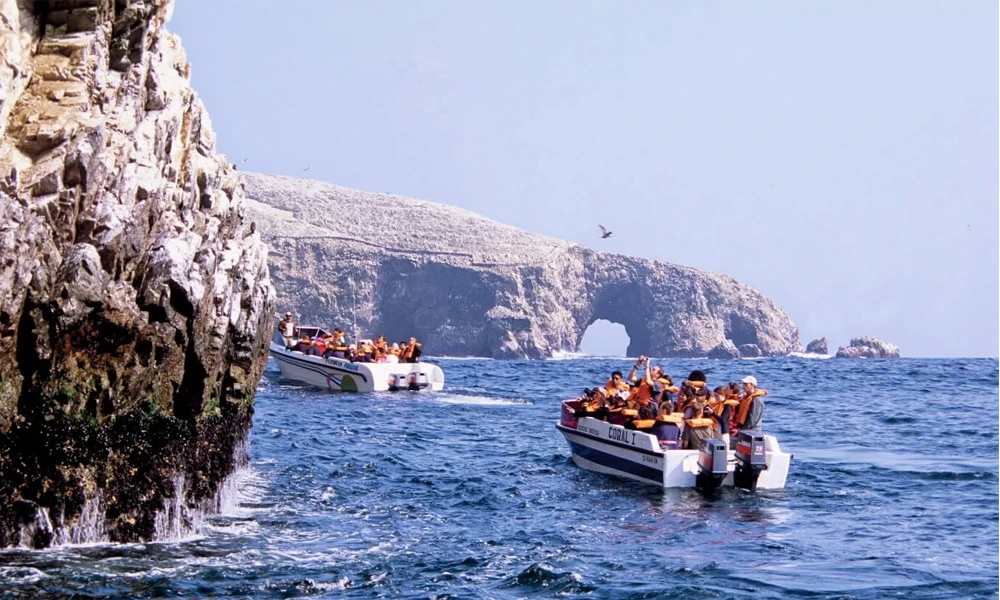 Llegada al conjunto de islotes rocosos que forman las Islas Ballestas, conocidas como “el pequeño Galápagos del Perú” por su extraordinaria biodiversidad.