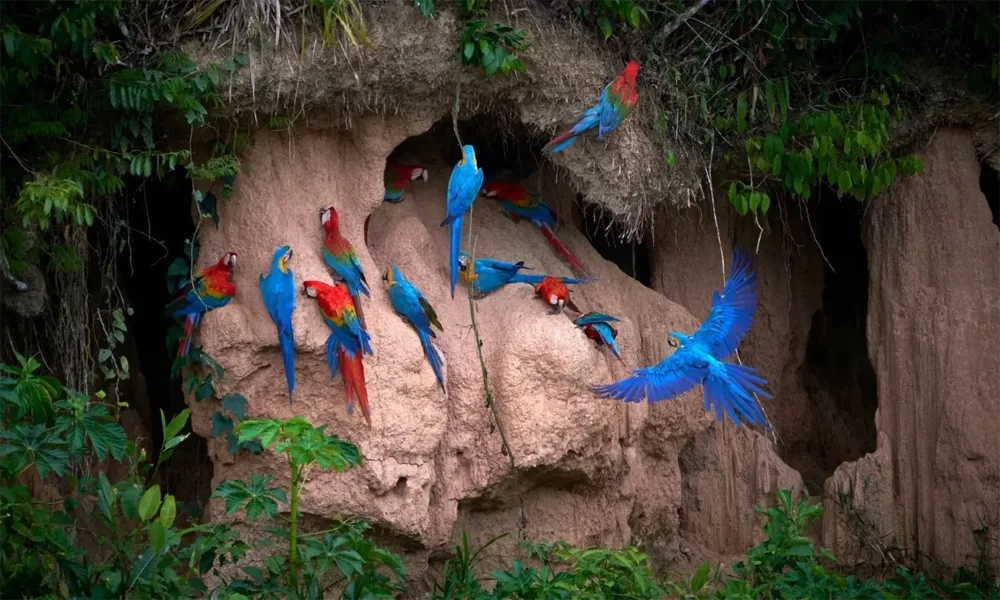 - 🛶 Visita a la collpa de guacamayos Chuncho, uno de los espectáculos naturales más impactantes de Tambopata.