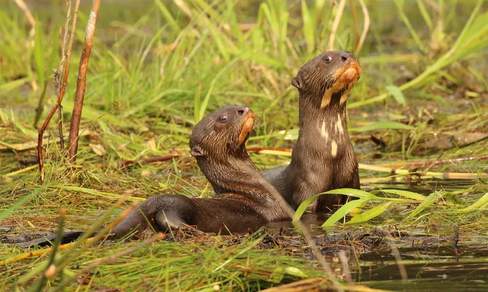 Capibaras, monos aulladores, tucanes, sajinos, caimanes, nutrias gigantes y, con un poco de suerte, jaguares descansando en las playas del río.