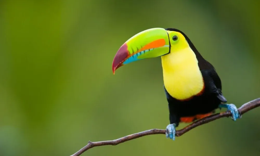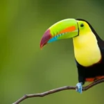 - Aves exóticas como el shansho (Hoatzin), cormoranes, tucanes y guacamayos volando en parejas.