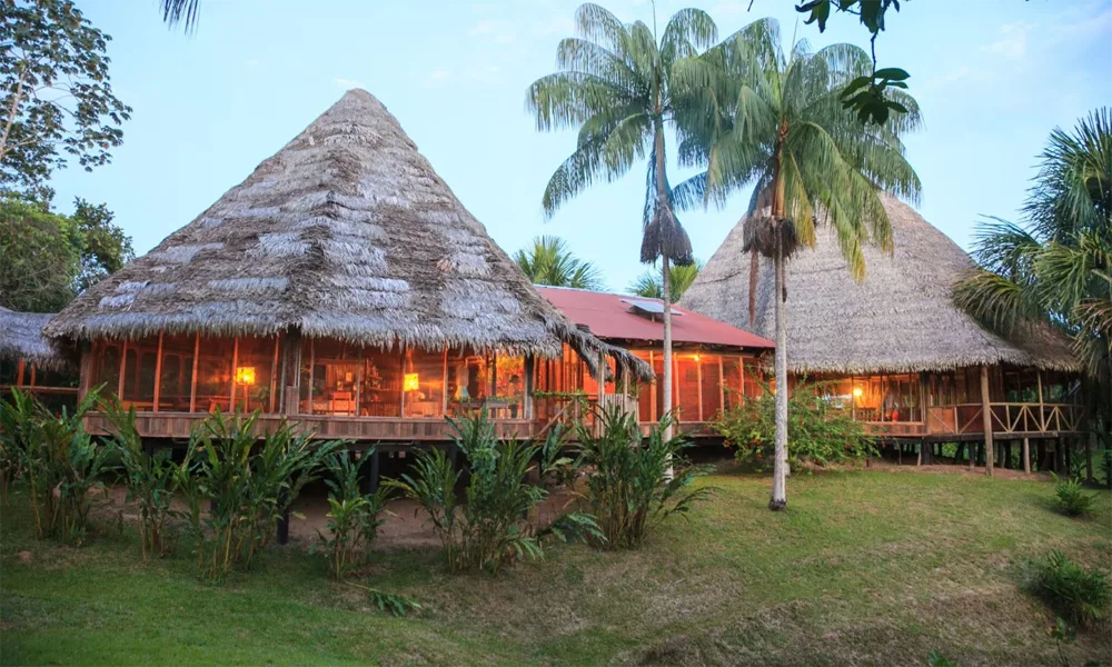 - Almuerzo en el lodge 🥘 con platos amazónicos como tacacho con cecina o pescado en hoja de bijao.